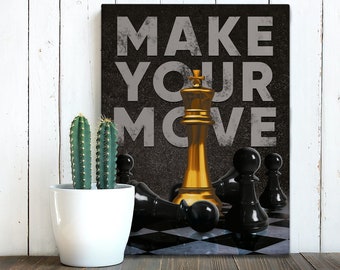 Amazon Com Checkmate Wall Art Chess Game Room Decor Motivational Chessboard Canvas Print Inspirational Checkers Quote Move In Silence Sign 30 X 40 Posters Prints